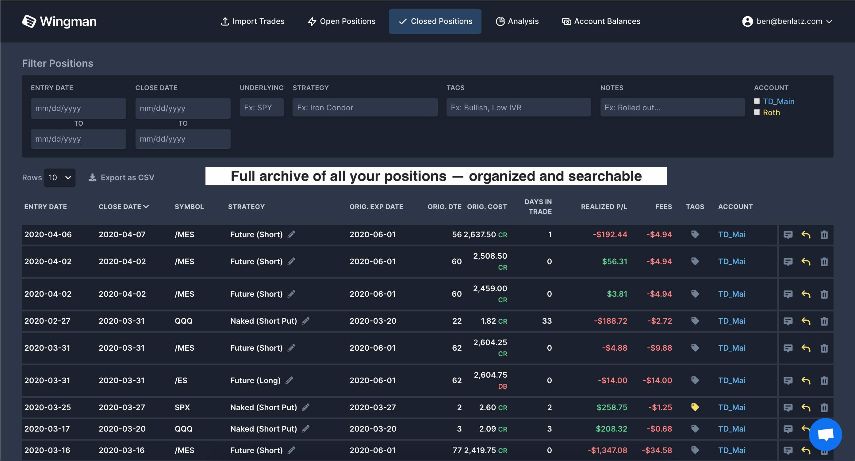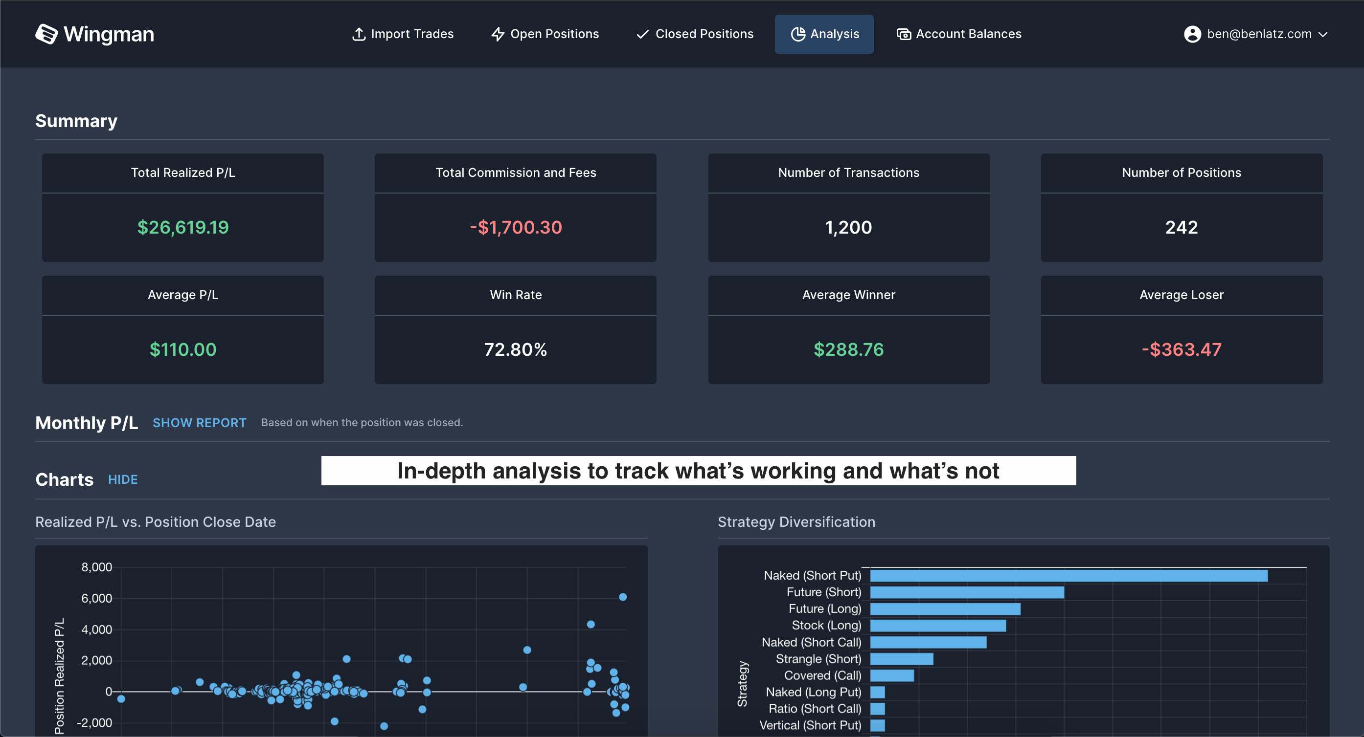 No more custom spreadsheets or manually entering trades. Wingman handles the complexity of tracking, so you can easily stay on top of your trading.